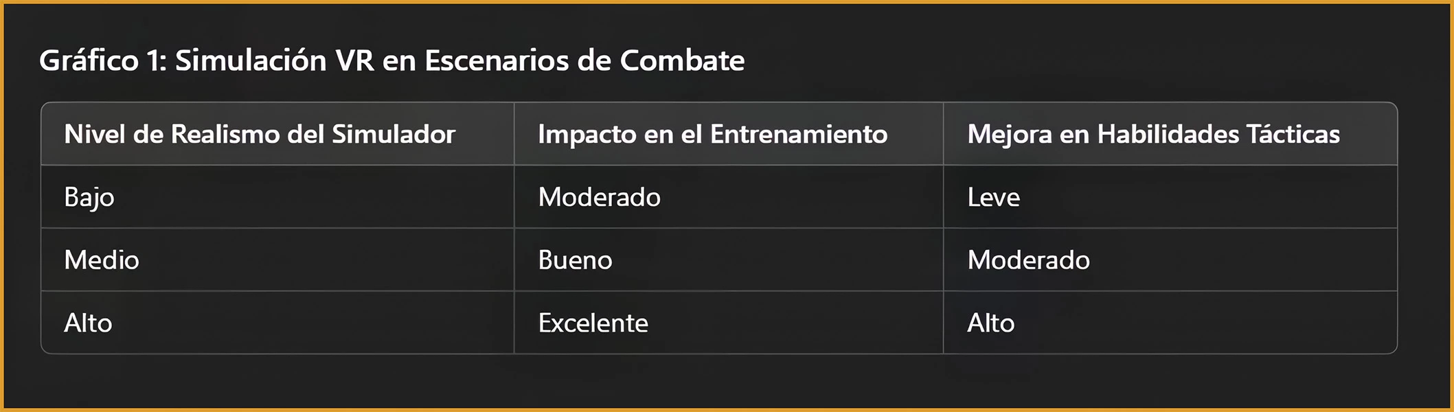 Gráfico 1: A continuación, se presenta un gráfico que ilustra cómo el uso de simuladores VR en el entrenamiento de combate mejora la preparación táctica al permitir experiencias inmersivas en escenarios hostiles controlados.