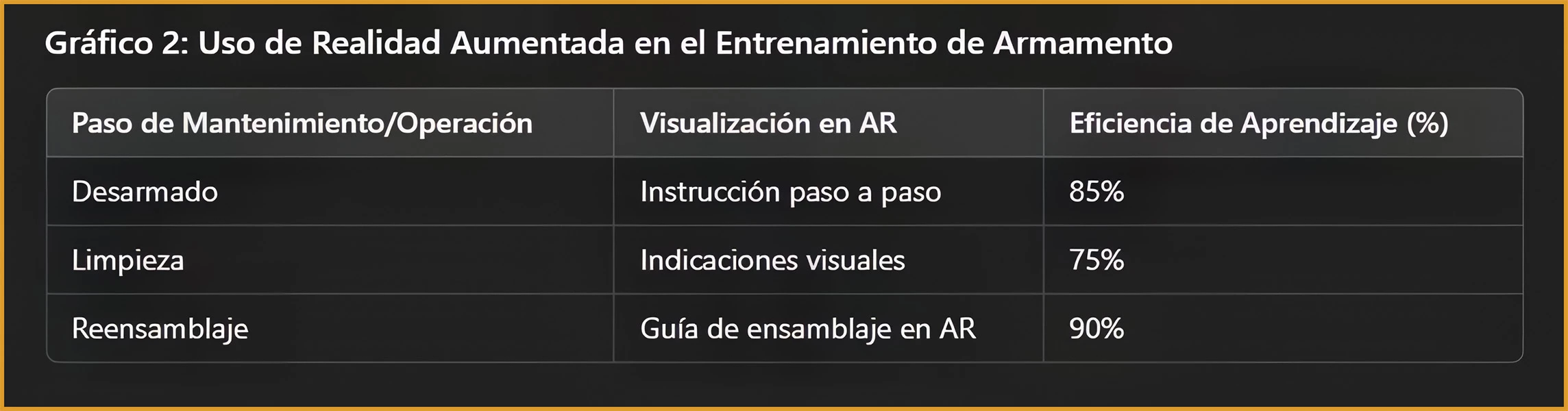 Gráfico 2: Representación de cómo la AR proporciona instrucciones de uso de armamento a través de gráficos y pasos interactivos.