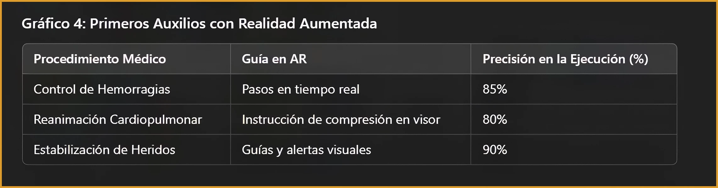Otra aplicación fundamental de la realidad aumentada es el entrenamiento en primeros auxilios y respuesta a emergencias en combate. La AR permite que los soldados practiquen procedimientos médicos y de rescate mientras reciben indicaciones en tiempo real sobre cómo realizar cada paso.